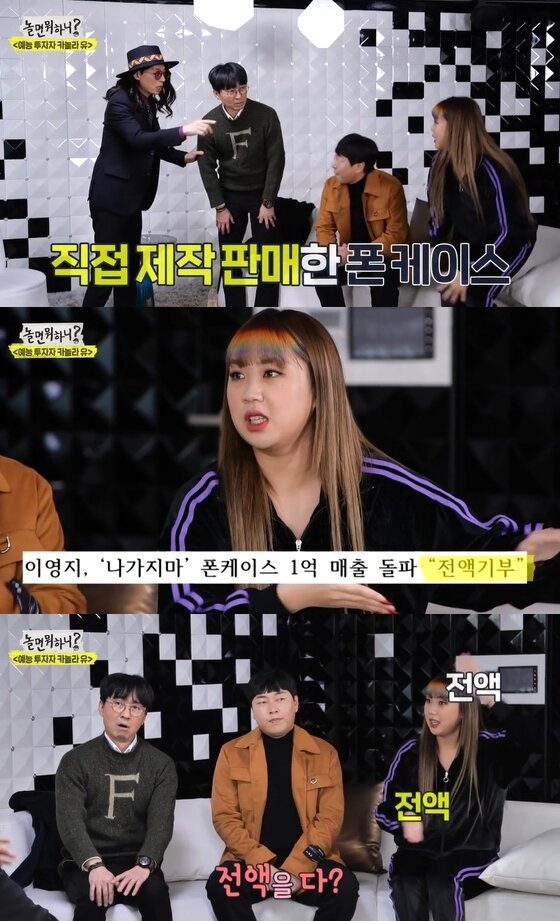 또 카놀라 유는 매출 1억원이 넘었다는 사실을 알렸고, 이진호도 "하루만에"라고 거들었다. 이에 곁에 있던 장항준 감독도 깜짝 놀랐고 이영지는 "전액을 기부했다"고 밝혀 훈훈함을 자아냈다.
