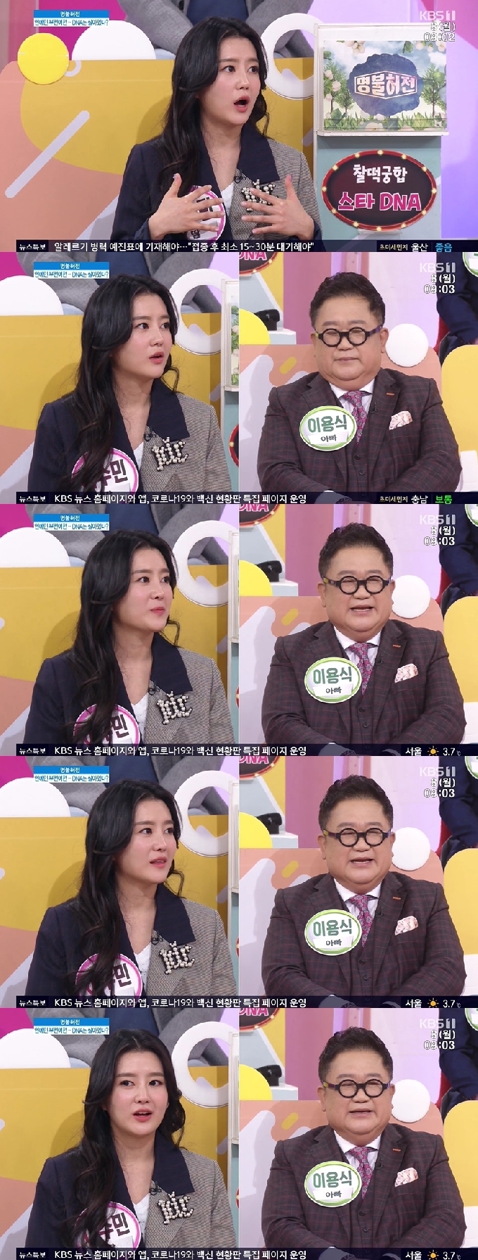 이수민은 "아버지가 아플까봐 그것에 대한 불안감이 많다"며 "악몽도 많이 꾼다, 꿈에서 뉴스를 틀었는데 속보에서 '코미디언 이용식 사망'이라고 뜨는 이런 꿈을 꾼다"면서 "불안하니까 아버지께 관리를 열심히 하라고 매몰차게 하는 것 같다, 운동기구도 사드렸는데 효과가 없다"고 털어놨다.