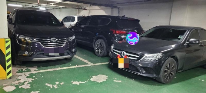 그는 "지하주차장이 많이 협소한 관계로 일찍 주차를 못 하면 밖으로 나가야 하는 상황이라 급히 지하주차장을 탐색했다"며 "그런데 큼직한 산타페가 (주차 구역을) 두 자리를 물고 있었다"고 했다.